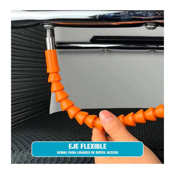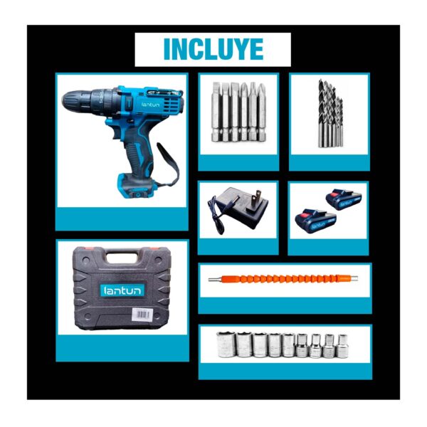 Accesorios Incluidos: 2 Baterías, 1 Cargador, 1 Maletín. Incluye extensor flexible, puntas, brocas y dados.