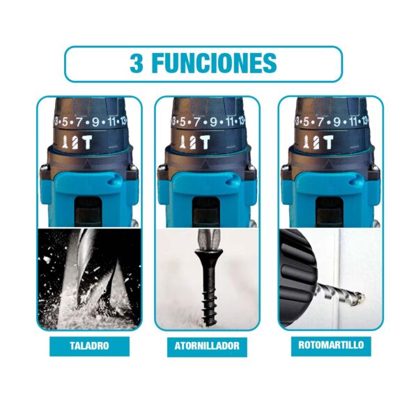 Tipo de Herramienta: Taladro Inalámbrico Percutor y Destornillador.