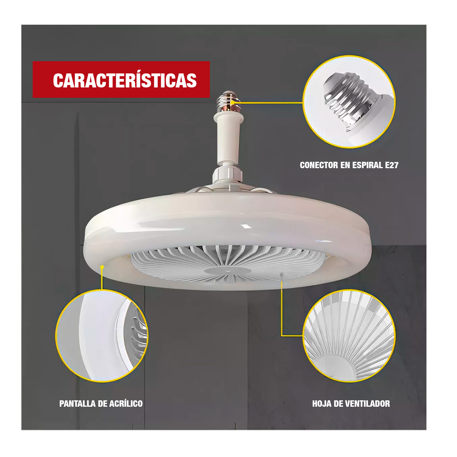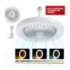 Ilumina y refresca tus espacios al mismo tiempo con este práctico y moderno ventilador con luz LED, diseñado para instalarse fácilmente como un foco común, sin necesidad de obras ni instalaciones complicadas; ofrece una iluminación potente y uniforme junto con una ventilación silenciosa y eficiente, todo controlado cómodamente desde su control remoto, ideal para dormitorios, cocinas, oficinas o cualquier ambiente donde quieras ahorrar espacio, reducir consumo de energía y disfrutar de mayor confort con un solo producto.