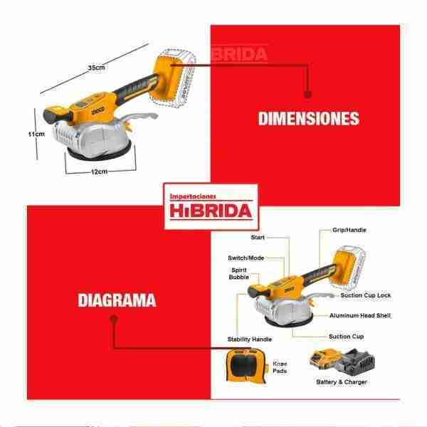 VENTOSA VIBRADOR 50KG MAYÓLICA 20V + MINI NIVEL MAGNÉTICO 9′ – CTVLI20101